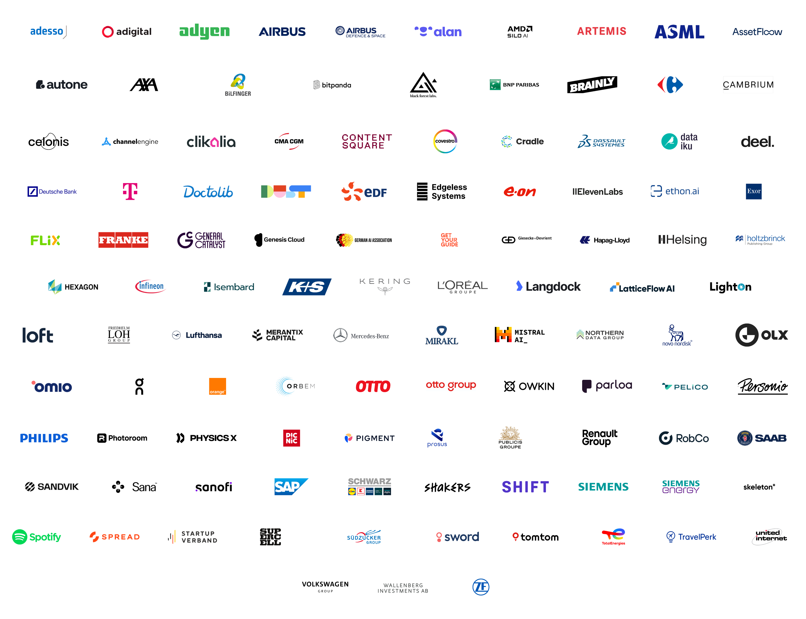 The current supporters of the EU AI Champions Initiative represent over 110+ organizations, $3+ trillion in public market cap, and over 3.7M jobs across Europe—and that list is growing. All participating companies are united in showing strong leadership in AI.